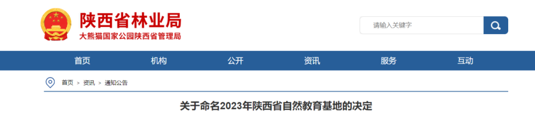 为深入贯彻落实习近平生态文明思想,推进生态文明建设,大力发展自然教育,进一步发挥好自然教育基地在推动自然教育工作中的重要作用,省林业局、省委文明办、省政协人资环委、团省委、省科协联合下发了《关于做好2023年陕西省自然教育基地申报工作的通知》(陕林宣发〔2023〕46号),根据文件要求,各地经自下而上推荐和相关专家实地核查,研究决定命名西安市鄠邑区园艺绿化中心苗圃、宝鸡市扶风县七星河国家湿地公园、陕西省咸阳市西望农场、铜川市印台区金锁石林景区等28个单位为陕西省自然教育基地。