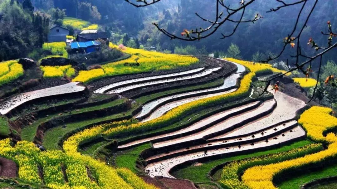 观花线路全长70余公里,途经汉源街道办、九台观、羌族文化产业园、巴山石羊栈梯田、毛坝河草川子风景区,油菜种植面积近2.5万亩。