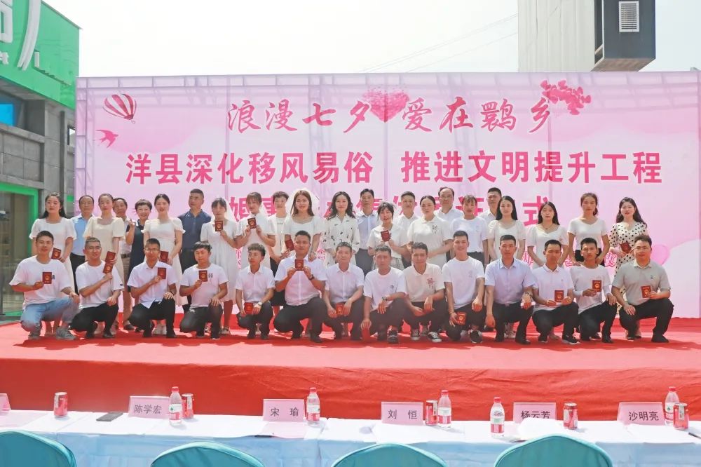 “今天我们自愿结为夫妻,将共同肩负起婚姻赋予我们的责任和义务...我们都风雨同舟,相濡以沫,不离不弃。”伴着这甜蜜的誓言,洋县15对新人在大家的见证和祝福下,在七夕佳节集体领取了结婚证。