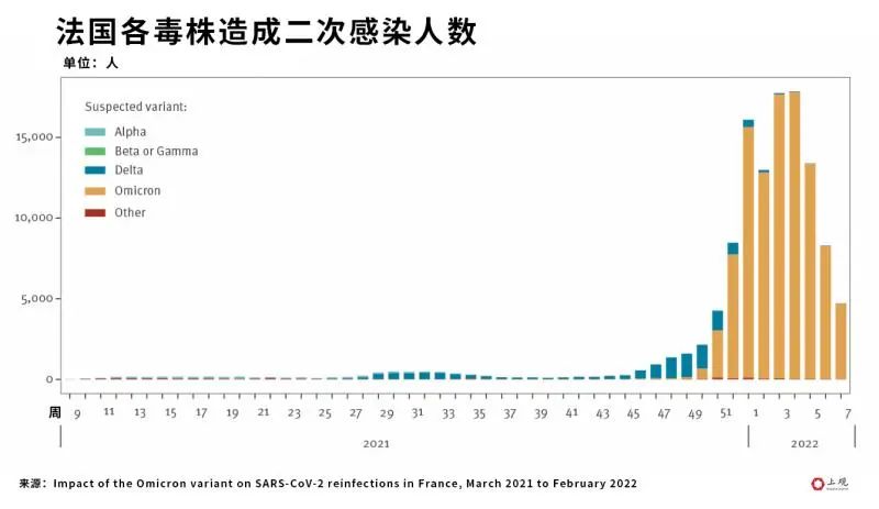 法国国家公共卫生机构在今年3月发表的论文中观察了法国2021年3月2日至2022年2月20日二次感染情况,据统计,累计二次感染人数达到58.4万人,占总感染人数的3.1%,其中99.1%为二次感染、0.9%为三次感染。