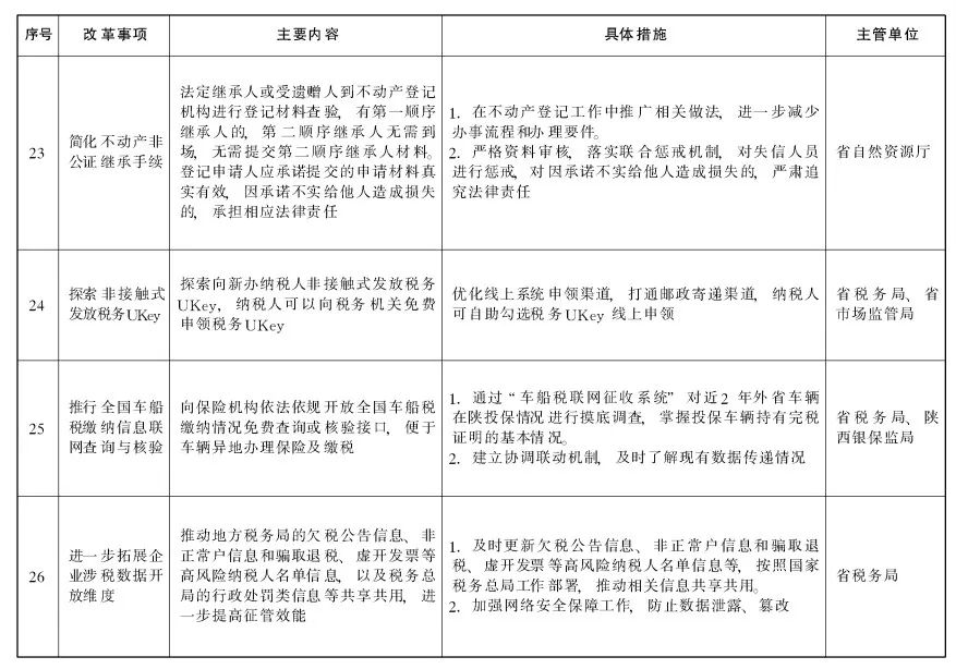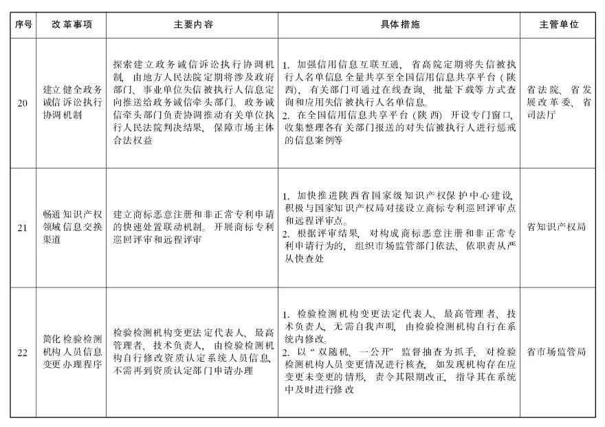 为深入学习贯彻党的二十大精神和习近平总书记来陕考察重要讲话重要指示,认真落实《国务院办公厅关于复制推广营商环境创新试点改革举措的通知》(国办发〔2022〕35号,以下简称《通知》)部署,按照全省营商环境突破年活动有关要求,经省政府同意,现就做好复制推广营商环境创新试点改革举措工作通知如下:一、提高思想认识。各地各有关部门要高度重视复制推广营商环境创新试点改革举措工作,将复制推广工作作为贯彻落实党中央、国务院决策部署的重要举措,作为聚力推进营商环境突破年活动的重要内容,列入本地区、本部门重点工作。要坚持目标导向与问题导向相结合、有为政府与有效市场相统一、统筹推进与重点突破相促进,聚焦市场主体关切,围绕机制创新,对标一流水平,积极先行先试,不折不扣推动复制推广工作落实到位。二、强化协同联动。对国家明确在全国推行的26项改革举措,省级有关部门要主动对标对表,细化工作措施,认真履行事中事后监管职责。要持续加大协调督促力度,加强对各市(区)工作的指导,及时协调解决存在问题。非试点地区可参考借鉴的24项改革举措,各地各部门要结合实际积极借鉴,成熟一批、推广一批,以复制推广带动全省营商环境整体突破。要大胆创新、先行先试,探索更多先进经验和好的做法,打造更多改革“单项冠军”。三、加强宣传引导。各地各部门要充分发挥主流媒体、新兴媒体等作用,及时宣传营商环境创新试点改革举措。要以开展营商环境突破年活动为契机,加强政策解读,做好业务咨询,准确传导信息,回应社会关切,合理引导预期,切实增强市场主体知晓度和满意度,推动形成陕西“人人都是招商环境、人人都是营商环境”的良好氛围。来源:陕西省人民政府网站