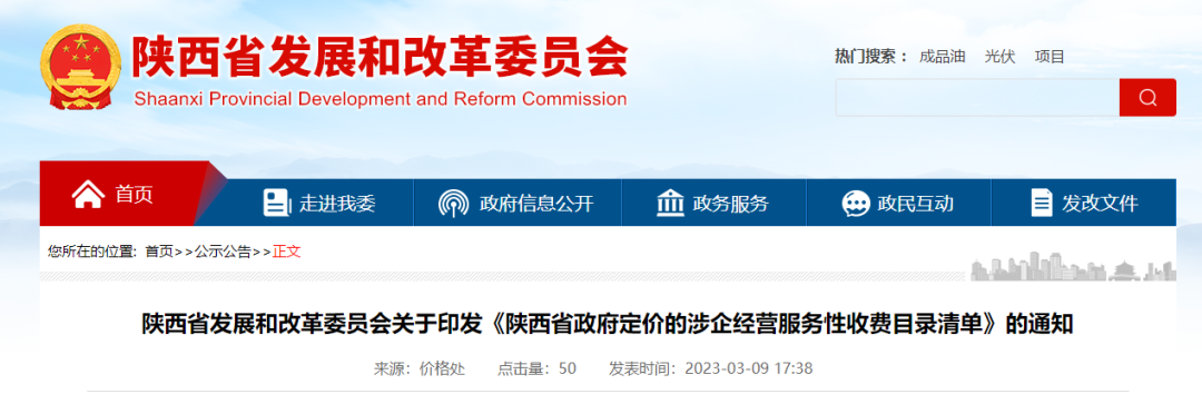 3月9日,据陕西省发展和改革委员会消息,最新的《陕西省政府定价的涉企经营服务性收费目录清单》(以下简称《目录清单》)印发,进一步规范涉企收费行为,提高涉企收费政策的透明度,强化社会监督。目录清单实行动态管理,按照有关规定及时更新并向社会公布。
